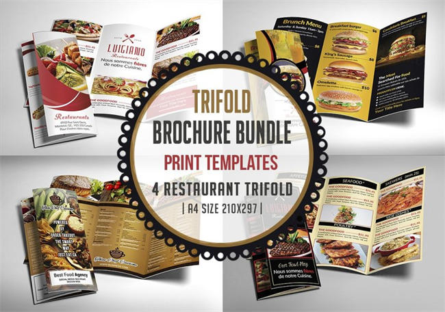 图穷联素材库 » 餐馆菜单折页传单模板 Restaurant-Menu-Trifold-Bundle