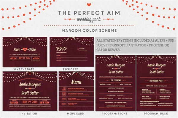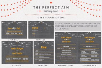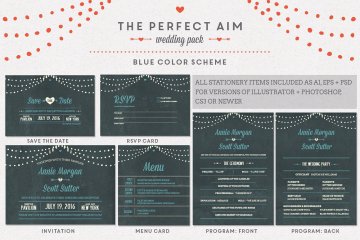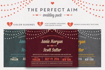 婚礼请柬贺卡卡片设计模板 Perfect-Aim-Wedding-Pack