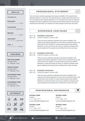 这组合集包括了2页易于定制的简历模板,1页参考和1页求职信模板!您可以编辑这些模板并改变颜色和字体,如果您觉得简历中没有必要,任何内容都可以删除。