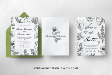 质朴的矢量手绘植物婚礼请柬贺卡设计模板 Botanical-Wedding-Invitation-Suite