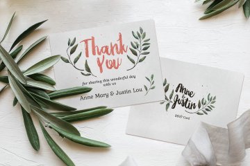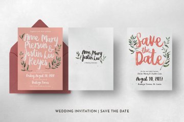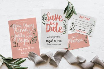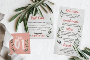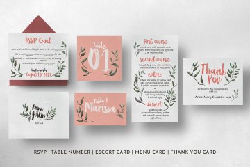 优雅质朴的水彩手绘元素婚礼请柬贺卡设计模板 Rustic-Pink-Green-Wedding-Suite
