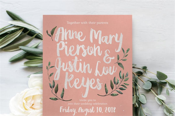 质朴的粉红色和绿色邀请功能: