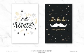 金箔装饰图案圣诞主题贺卡请柬模板 Black-White-Christmas-Cardst