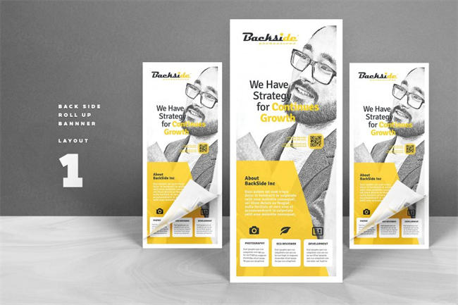图穷联素材库 » 黄色主题企业商业易拉宝横幅展架设计模板 Roll-up-Banner