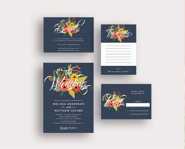 图穷联素材库 » 蓝色花卉美丽婚礼模板设计素材 In-Between-the-Blooms-on-Blue