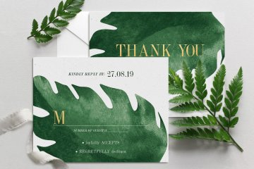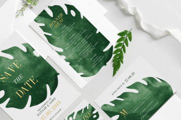 图穷联素材库 » 手绘水彩龟背叶元素婚礼邀请函请柬设计模板 Elegant-Tropical-Wedding-Suite