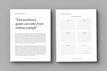 一个10页的多功能电子书模板,附带Adobe Illustrator和Adobe InDesign文件。动态点差采用现代图像布局和简约排版设计。此外,还包括工作表样式页面,计划页面和头脑风暴/记笔记部分。适合设计师和创意企业家。