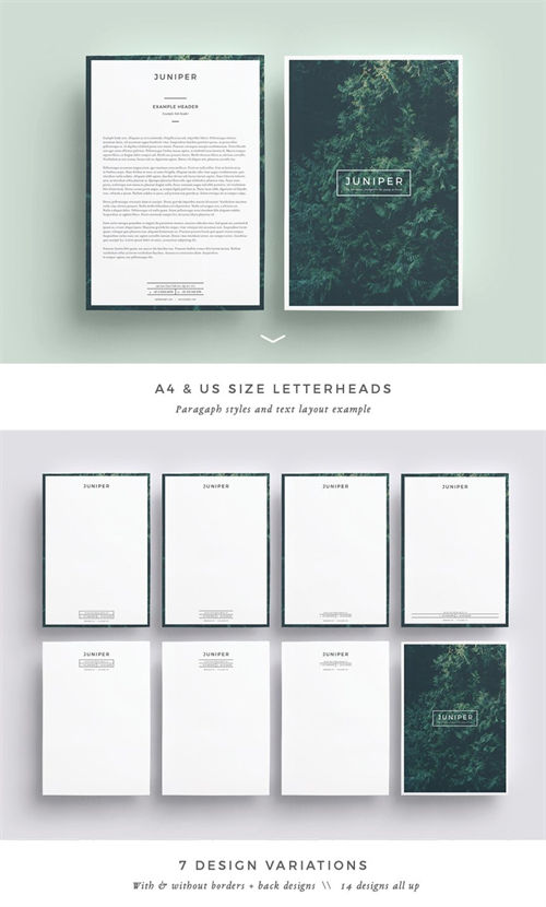 图穷联素材库 » 美丽现代的信封信笺卡片设计模板 J-U-N-I-P-E-R-Letterhead-Comps