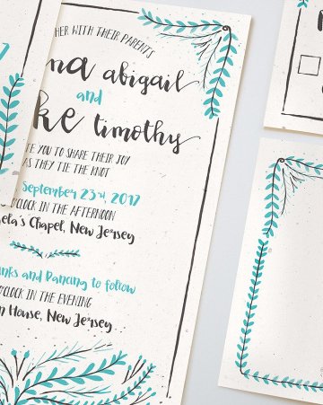 图穷联素材库 » 手绘水彩树叶元素婚礼请柬贺卡设计模板 Watercolor-Floral-Wedding-Suite
