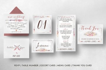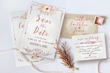 波西米亚风格手绘水彩婚礼套装模板素材 Boho-Flower-Wedding-Suite