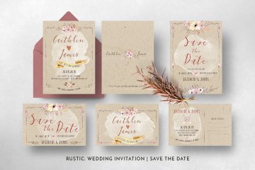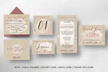 您在套餐中拥有的是:婚礼邀请和保存日期的正常尺寸和明信片尺寸,RSVP,桌号,护送卡,菜单卡和感谢卡为您的客人; 每个细节都很容易编辑。所有这些,有2种风格:白色背景和棕色乡村背景。