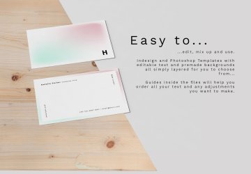使用文档图层设计,Holo模板可以如图所示使用,或者您可以使用提供的背景,指南和文本框来混合和创建您自己的独特设计。