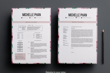 优雅花卉边框简历求职信模板 Floral-1-page-resume-template