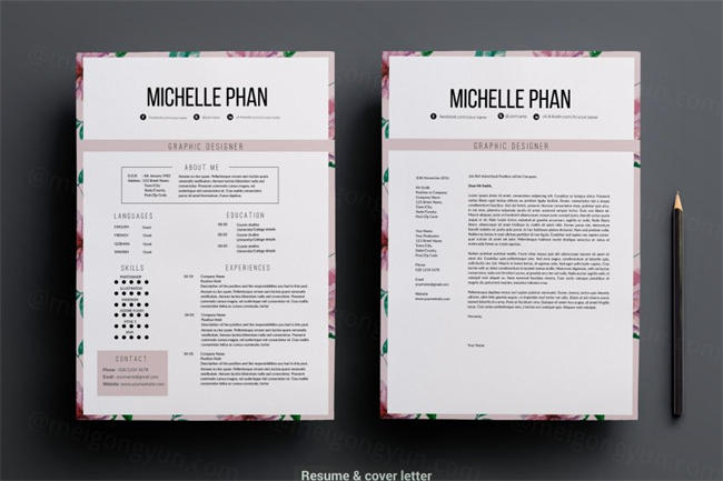 这组模板合集包括一个简历样本,封面信和参考的例子,都是漂亮的花卉主题。您可以轻易改变颜色,布局和字体,以适应您的设计需要,这份优雅而专业的简历模板会让您的简历变得引人注目。