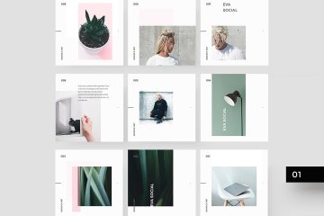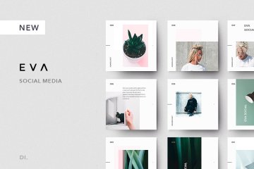 简约时尚的杂志风格社交媒体PSD模板 EVA Social Media + FREE Bonus