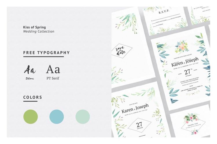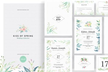 图穷联素材库 » 春天手绘水彩花卉植物设计模板 Kiss-Of-Spring-Wedding-Collection