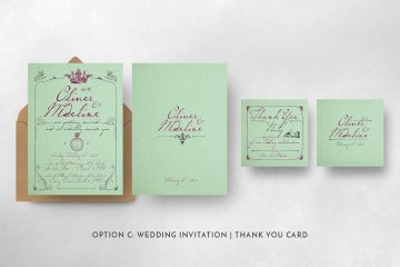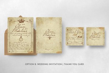 用这一套1900年的巴黎婚礼请柬来制作你的复古婚礼请柬吧!有三种不同的调色板,每一种都附有请柬和感谢卡。