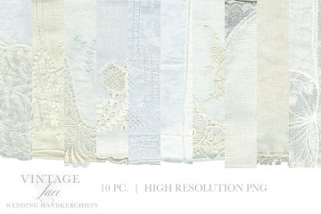 10大规模复古白色蕾丝婚纱手帕图形。大多数测量在10“-11”(3000-33像素)之间。每个图形都是一个单独的文件,而不是拼贴画的一部分。它们是.png格式的高品质图像,300 ppi,背景透明。