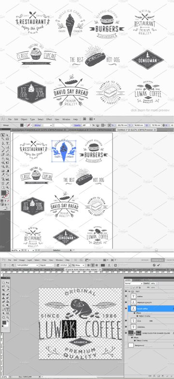 图穷联素材库 » 食物与饮料主题复古徽标模板 Vintages-Badges-Food-and-Drink