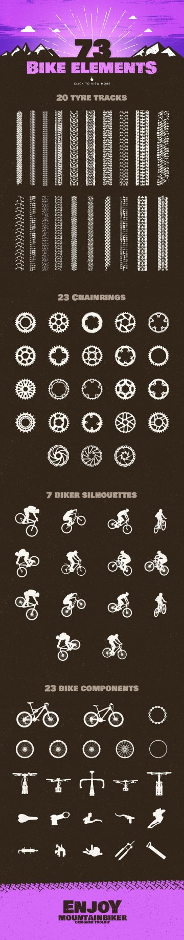 这组山地车相关的商标合集让你可以在几分钟内做一个很棒的logo,通过使用这个工具包的元素,你可以创建一致的标志外观,用于设计博客图形,文具,标签,徽章,邮票,信息产品等更多你需要创建的设计项目!