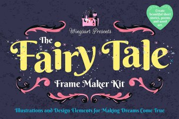 介绍童话框架制作工具包!受古董儿童书籍和动画电影的启发,这套装置包括丰富的插图元素,设计模板和无缝模式准备等待你让别人的梦想成真。
