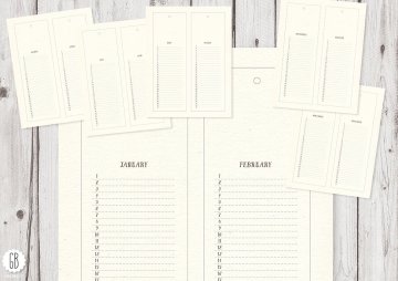 项目详情:一套高质量的万年历纸。12个月= 6个独立的8,5“x11”文件。6个JPG文件。高分辨率,扫描纸张背景。