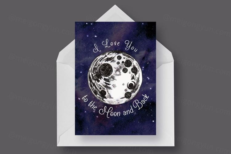 图穷联素材库 » 艺术月亮星空元素婚礼贺卡请柬设计模板 To-the-Moon-and-Back-Wedding-Suite