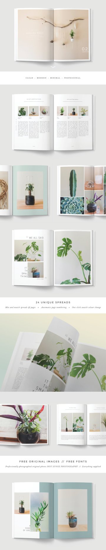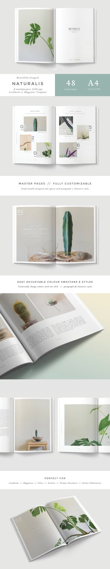 图穷联素材库 » 盆栽植物主题画册杂志设计模板 NATURALIS-Look-Book-Magazine