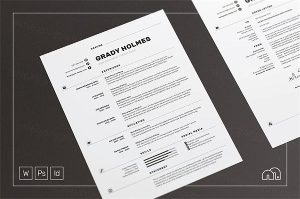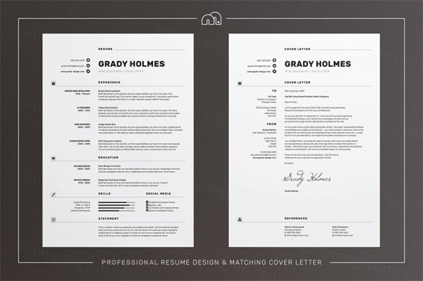 两列式简约专业简历求职信模板 ResumeCV-Grady