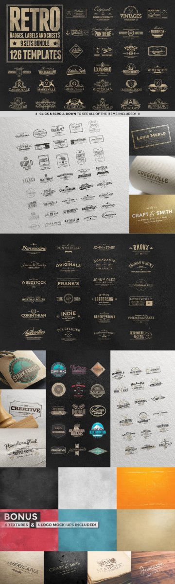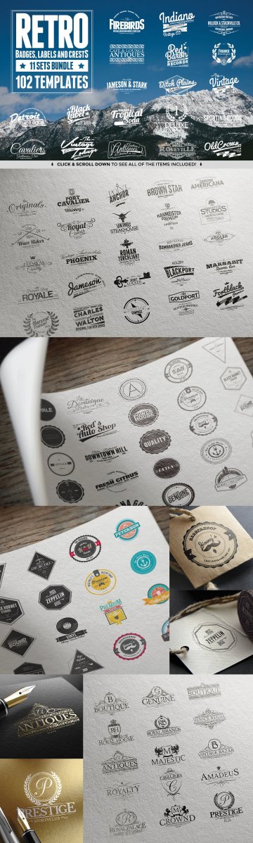 捆绑1:http://creativemarket.com/Zeppelin_Graphics/28041-102-Retro-Badges-Labels-and-Crests 捆绑2:http://creativemarket.com/Zeppelin_Graphics/85838-126-Retro-Badges-Labels-Crests