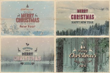 9款复古怀旧风格圣诞贺卡模板 Vintage-Christmas-Cards