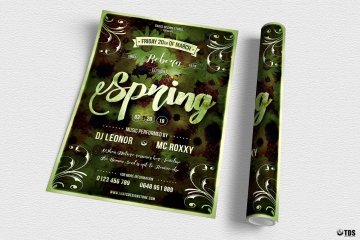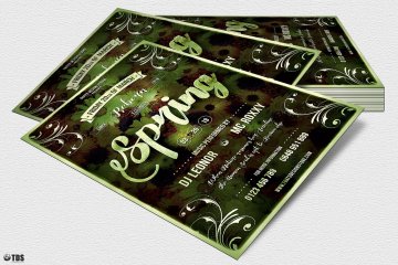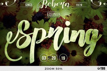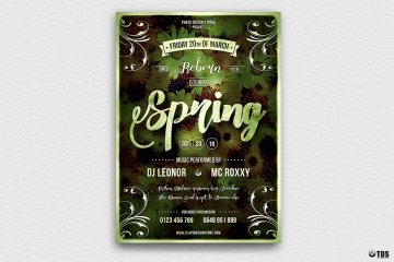 图穷联素材库 » 春季繁花绿叶背景传单海报PSD模板 Spring Equinox Flyer Template V1