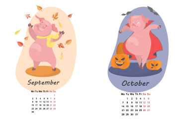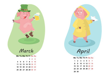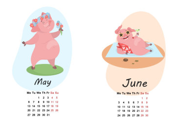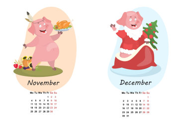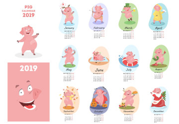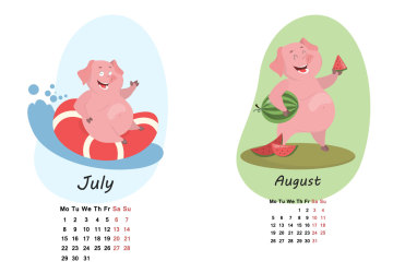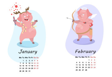 年卡通猪创意日历EPS矢量模版 Pig calendar for