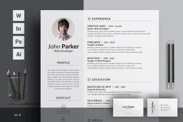 这个专业的简历和名片模板是在Adobe Photoshop,Illustrator,Indesign和MS Word又名Microsoft Word中制作的。这个简单/干净的简历模板是专业组织和标记的,所以每个初学者都可以像专业人士一样编辑它。