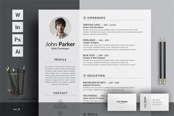 优雅简约的商务简历名片多格式通用模板素材 Resume/CV