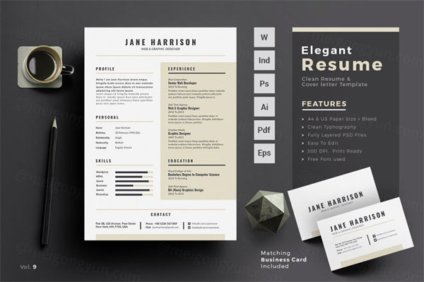图穷联素材库 » 优雅简约的商务简历名片多格式通用模板素材 Resume/CV