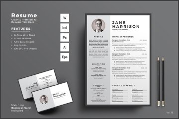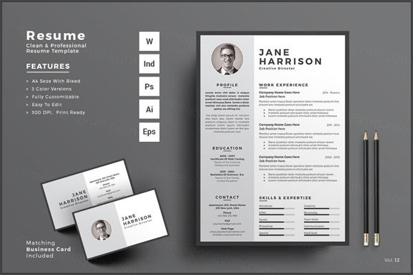 这个专业的简历和名片模板是在Adobe Photoshop,Illustrator,Indesign和MS Word又名Microsoft Word中制作的。这个简单/干净的简历模板是专业组织和标记的,所以每个初学者都可以像专业人士一样编辑它。