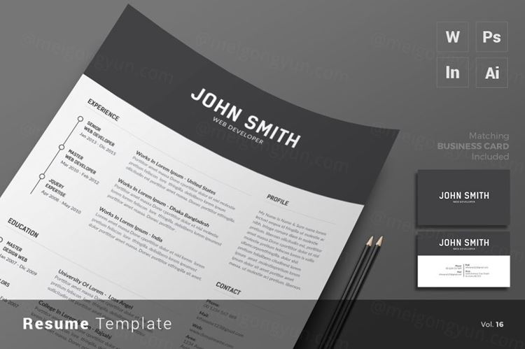 图穷联素材库 » 优雅简约的商务简历名片多格式通用模板素材 Resume/CV