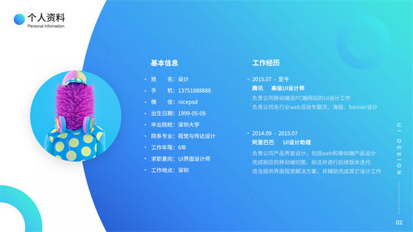 国内95后新锐设计师个人作品集UI提案优秀简历PSD整套模板 42P
