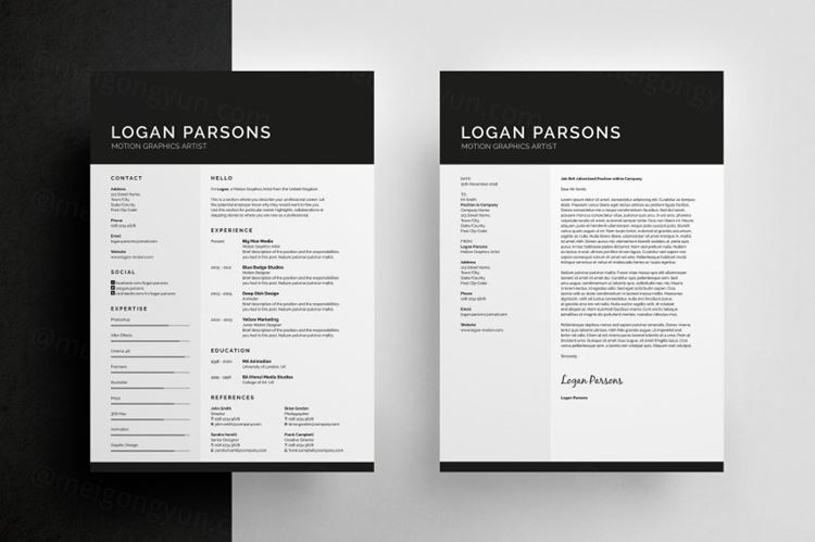 美国黑色系列畅销作品!高端简约商务简历求职信名片模板素材 の Resume/CV - Logan