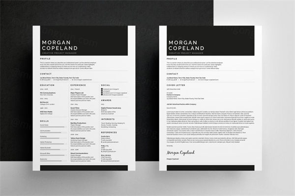 美国黑色系列畅销作品!高端简约商务简历求职信名片模板素材 の Resume/CV - Morgan