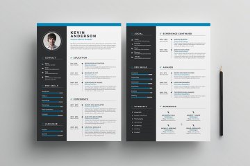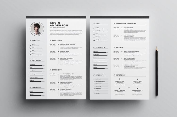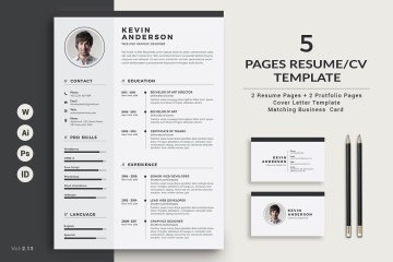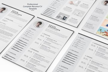 这是一份完整的简历。它包括您在工作中需要提及的所有部分。你有扩展的页面提到你的经验,2个不同的布局的投资组合页面,以显示您的工作/组合和更多喜欢 - 技能,兴趣,参考,语言等匹配的名片模板。