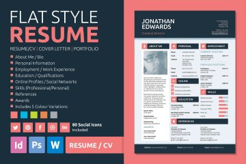 一个美丽,干净,组织良好的简历/简历模板,具有现代,平面风格的主题。非常适合那些寻求简单但引人注目的人士。