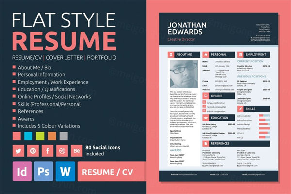 图穷联素材库 » 干净的扁平化现代风格简历模板 Flat Style Resume