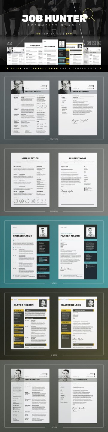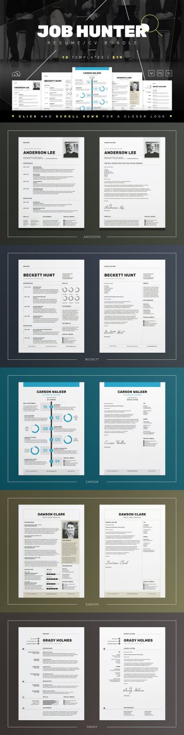 图穷联素材库 » 职场杀手!跳槽必备简历模板合集包 JOB HUNTER - Resume/CV Bundle
