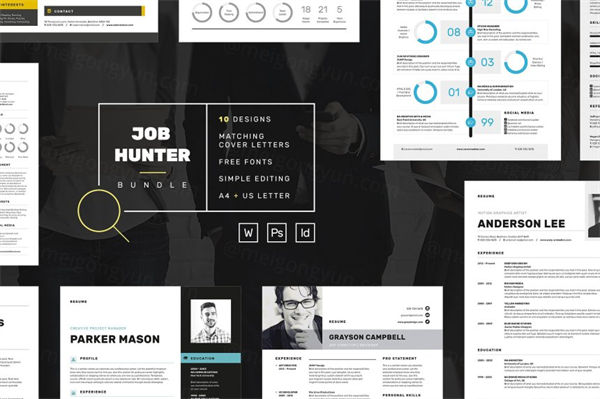 职场杀手!跳槽必备简历模板合集包 JOB HUNTER - Resume/CV Bundle
