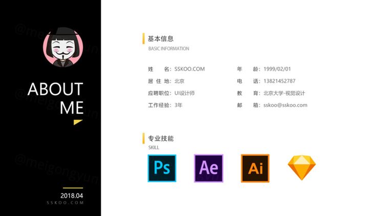 国内95后新锐设计师个人作品集UI提案优秀简历PSD整套模板 25P
