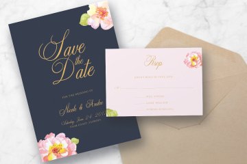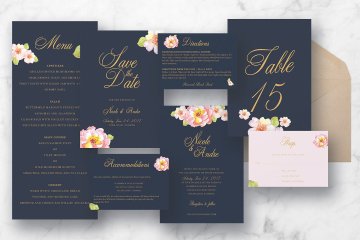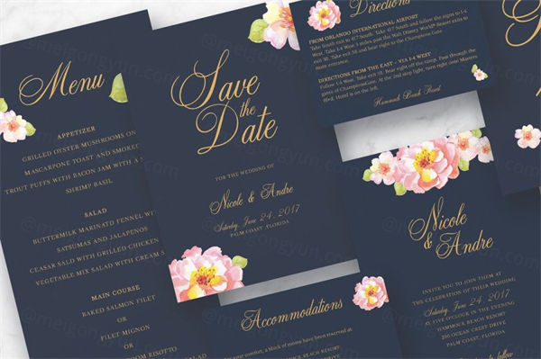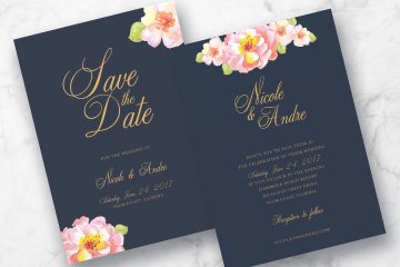 粉色花卉婚礼请柬邀请函设计PSD模板 Pink Floral Wedding Suite