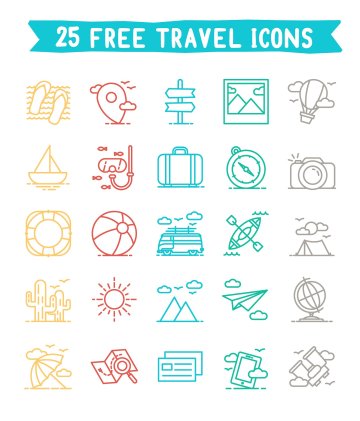25个自定义旅行图标,设计有4种不同风格,可搭配任何品味