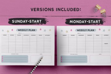 在Adobe Illustrator中打开此每周计划程序并进行更改以满足您的需求。更改字体,颜色,图形以使其成为您自己的。将其打印出来并放在桌面上,以帮助您保持井井有条!